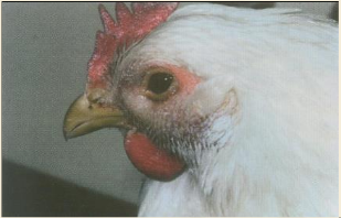IC在雞育成階段和產蛋階段高發,各個品種雞對Apg都易感,尤其是8-16周齡階段育成及產蛋雞群。老齡雞感染較為嚴重。發病初期主要表現為采食量和飲水量輕微下降,打噴嚏,流出的鼻液先為清亮色,三到四天后轉為白色膿性鼻涕,并伴著流淚,眼腫大,嚴重時整個頭部腫大,眼睛內陷,部分蛋雞眼睛失明。IC的一個特征是潛伏期短,接種培養物或分泌物后24-48h內即可發病。