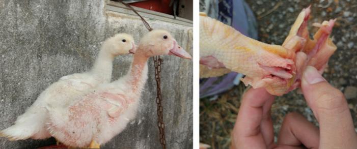 新型細(xì)小病毒引起不同品種鴨“脫毛癥”和“脆骨癥”