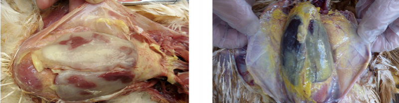 11、心包積液肝炎綜合癥:肝臟顏色變黃、腫脹、出血或肝臟點(diǎn)狀壞死等癥狀。